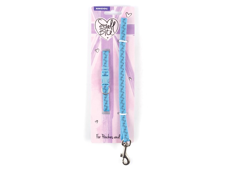 Ancol Small Bite puppy collar and lead set. Blue reflective paw & bone.